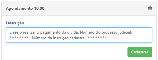 Após preencher os dados, finalize o agendamento no sistema clicando em Cadastrar.